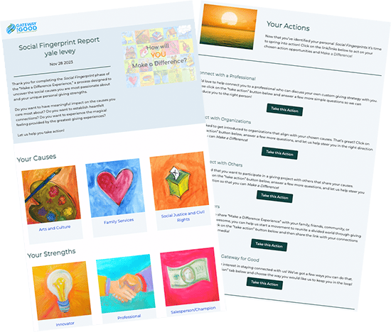 Members will be able to discover their personal social fingerprints and motivations for action as well as the collective fingerprints of your community. This, along with a giving experience leads to greater outcomes for your club!